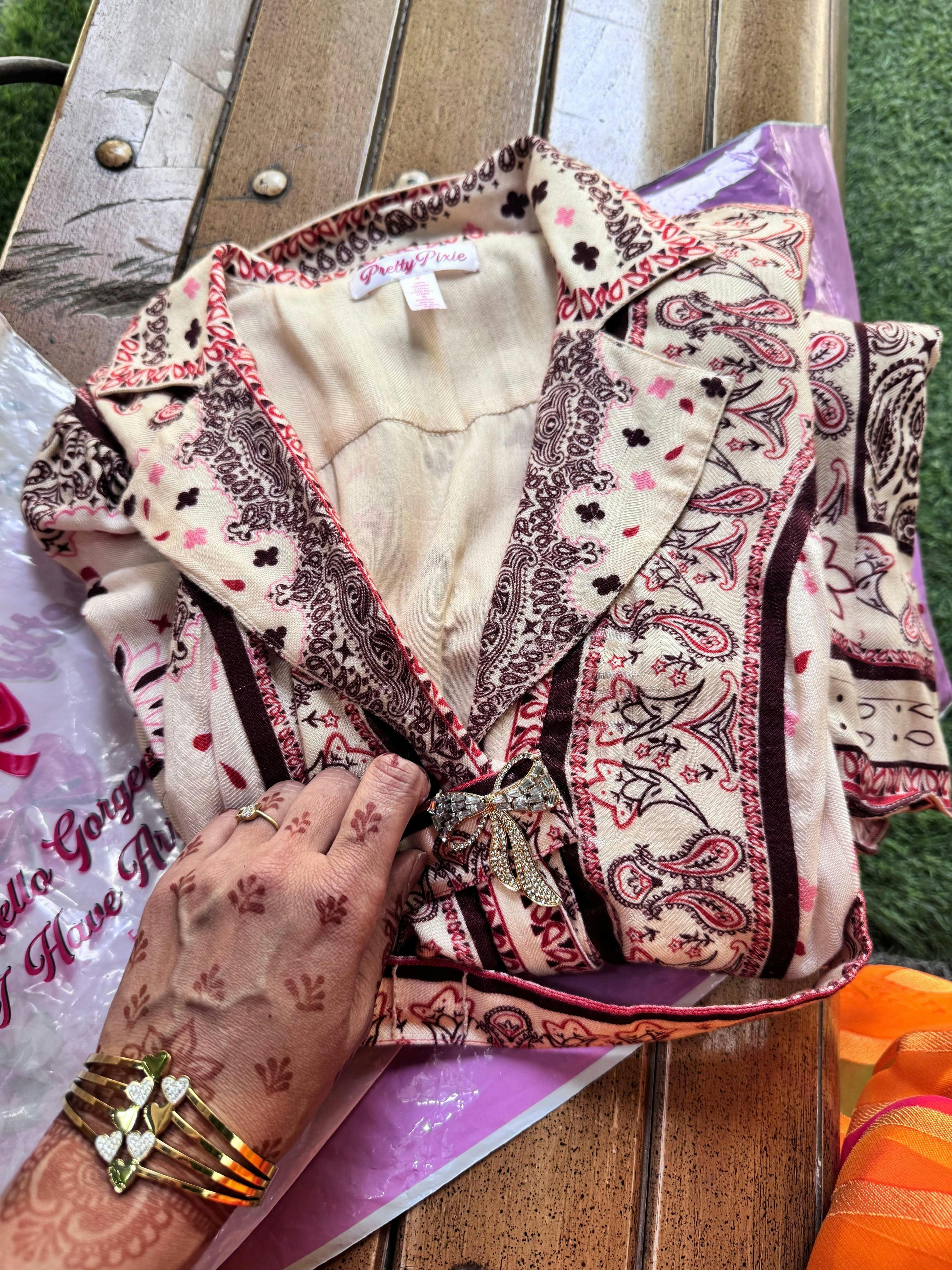 Statement Print: The bold bandana print adds character, while subtle floral prints within the design create depth and variety.